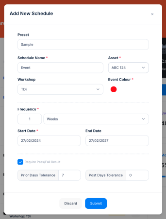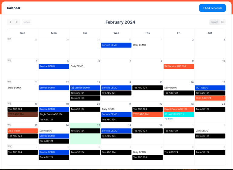 Add preset schedules for events such as services, MOTs, tachograph calibrations, weekly checks and anything else that you may need.